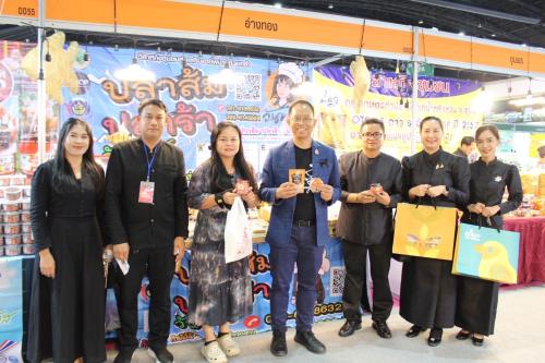 ในการนี้ นายทัศนัย สุธาพจน์ รองผู้ว่าราชการจังหวัดอ่างทอง พร้อมด้วยนายไชยา พิมสิงห์ พัฒนาการจังหวัดอ่างทอง ผู้อำนวยการกลุ่มงานฯ เจ้าหน้าที่พัฒนาชุมชน ได้เข้าร่วมพิธีเปิดงานและได้เยี่ยมให้กำลังใจผู้ประกอบการ OTOP ที่เข้าร่วมแสดงและจำหน่ายสินค้าภายในงาน ซึ่งจังหวัดอ่างทอง มอบหมายให้สำนักงานพัฒนาชุมชนจังหวัดอ่างทอง ดำเนินการส่งเสริมสนับสนุนให้ผู้ผลิต ผู้ประกอบการ OTOP เข้าร่วมจำหน่ายสินค้าภายในงาน ประกอบด้วย ร้านค้าของผู้ประกอบการผลิตภัณฑ์ OTOP จังหวัดอ่างทอง จำนวนทั้งสิ้น 22 บูธ ได้แก่