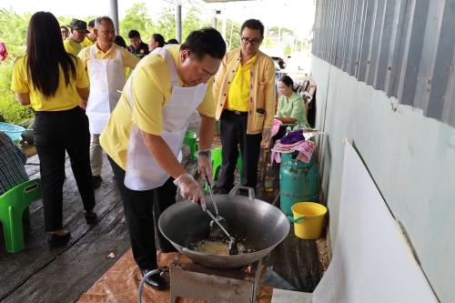 ผู้ตรวจราชการกระทรวงมหาดไทย รักษาการในตำแหน่งผู้ว่าราชการจังหวัดอ่างทอง ตรวจเยี่ยมให้กำลังใจจิตอาสา “ครัวชุมชน” ทำอาหารช่วยเหลือผู้ประสบอุทกภัย ต.โผงเผง