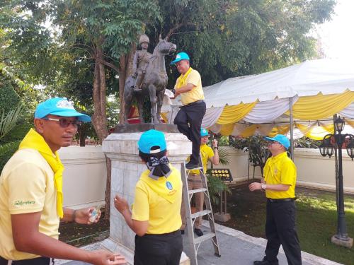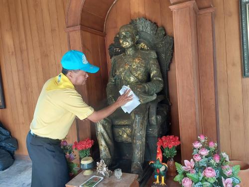 ในการนี้ รองผู้ว่าราชการจังหวัดอ่างทองได้ถวายความเคารพพระบรมฉายาลักษณ์ พระบาทสมเด็จพระจุลจอมเกล้าเจ้าอยู่หัว พระบาทสมเด็จพระเจ้าอยู่หัว และพระบาทสมเด็จพระนางเจ้า ฯ พระบรมราชินี พร้อมกล่าวน้อมสำนึกในพระมหากรุณาธิคุณ และนำจิตอาสากล่าวปฏิญาณ “เราทำความดีด้วยหัวใจ” ก่อนเหล่าจิตอาสาร่วมกันทำความสะอาด เก็บเศษขยะ ล้างถนนในบริเวณพื้นที่วัด รวมถึงปรับภูมิทัศน์ริมถนน เพื่อความสะอาด และสร้างความปลอดภัยแก่ผู้ใช้รถใช้ถนน
